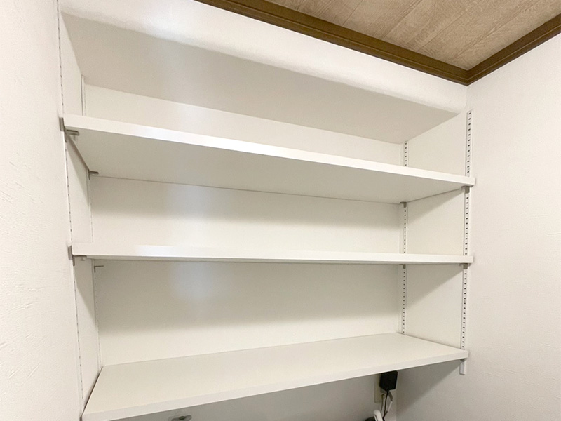 高さ調整ができて使いやすい、洗濯室の可動棚